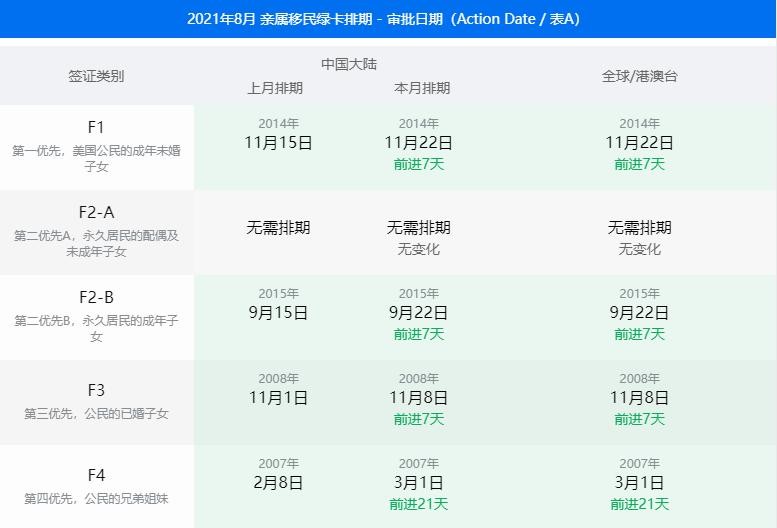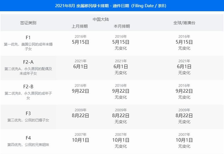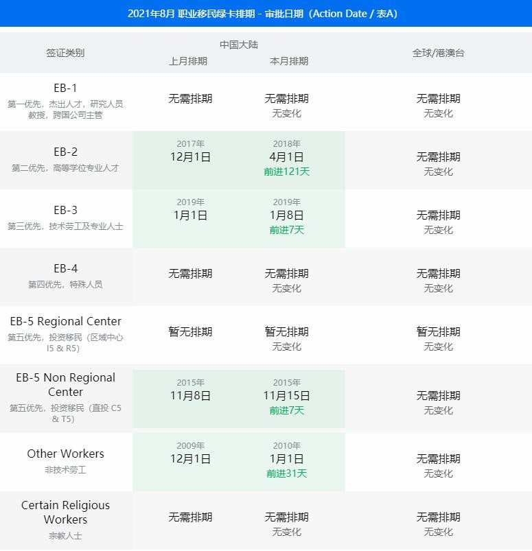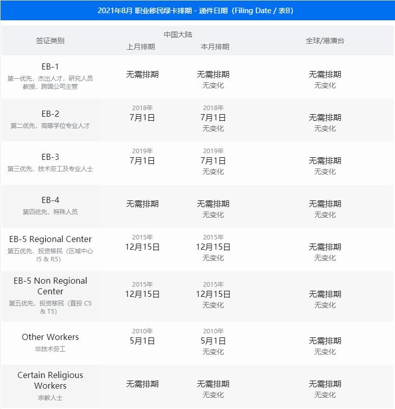 近日,美国国务院公布了2021年8月的最新绿卡移民排期表,从目前的排期可以看出,美国为吸引人才,加快了职业移民的步伐。而投资移民再次出现了停滞。