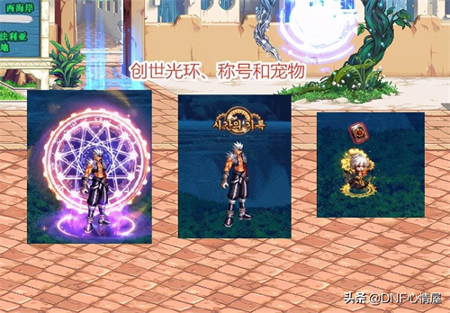 在典藏礼包中,还包含了觉醒插图,以男鬼剑和女枪手为例,跟原初时装差不多。当然,可不止这点东西,为了激发玩家动力,经典周边三连也得安排上!只要玩家买了典藏礼包,会送光环、称号和宠物,以创世者卡罗索为载体。