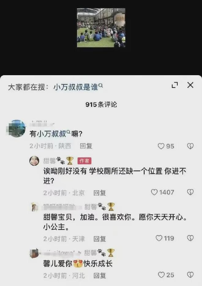 但是更有人过分地是直接在甜馨的评论区调侃,则得到了甜馨的回怼。