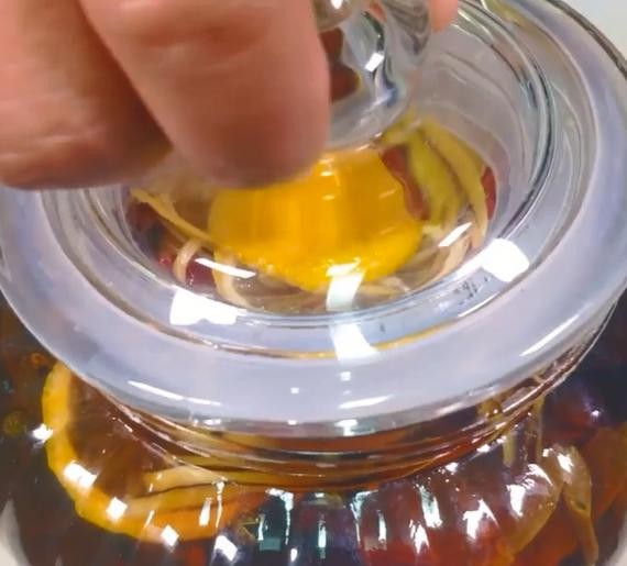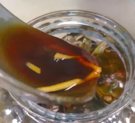 第六步:盖上密封盖,放到冰箱里冷藏48小时,就可以吃了,这样制作的醉蟹柔嫩鲜香,