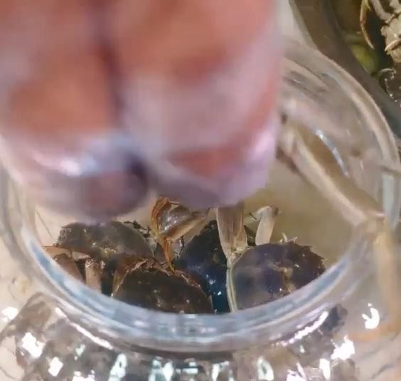 盖上盖子,把螃蟹呛晕,放白酒不止能把螃蟹呛晕,还可以给螃蟹消毒,延长保质期