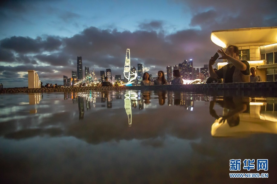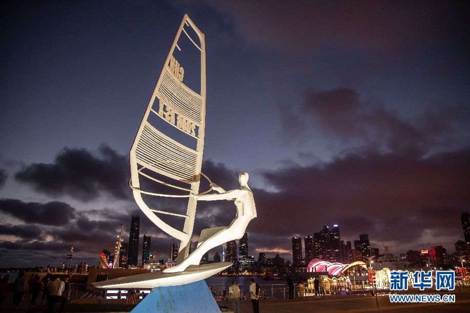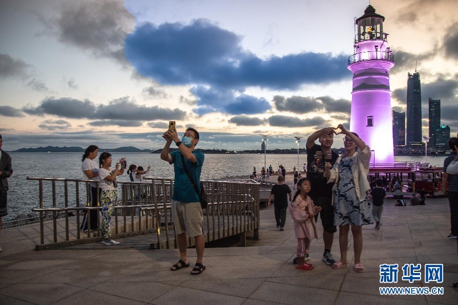 情人坝坐落于浮山湾,背靠燕岛,面朝大海。新华网发(于胜宪 摄)