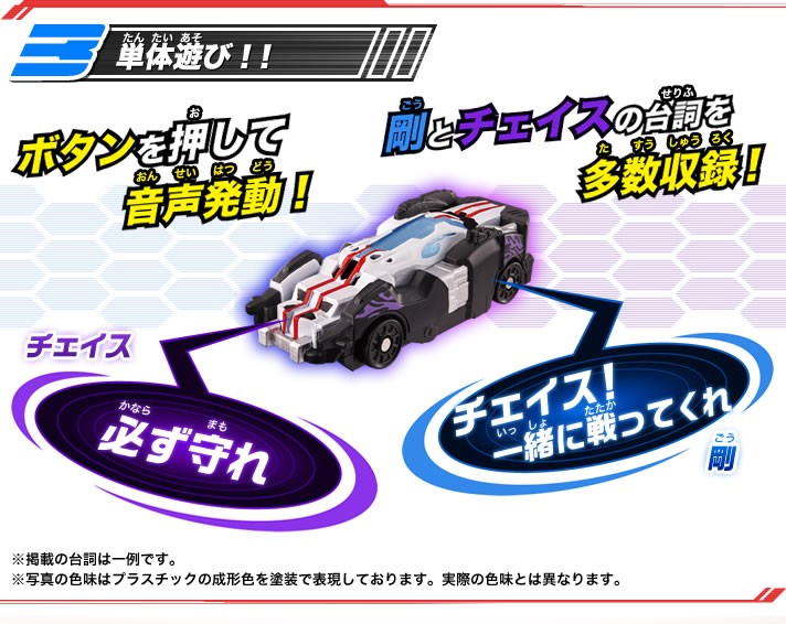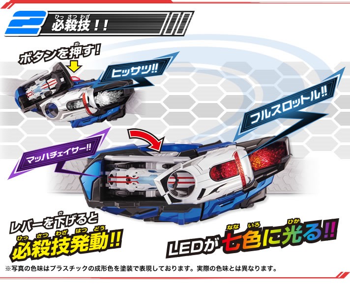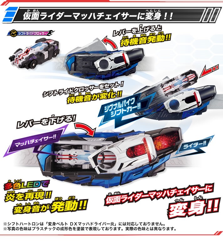 “DX马赫变档车”需另购“DX假面骑士马赫驱动器-炎”进行联动把玩