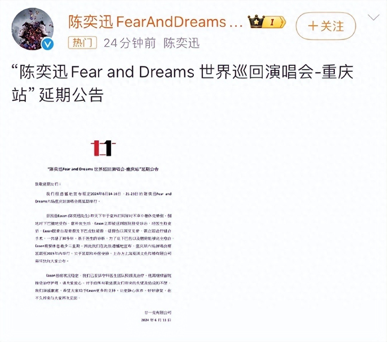 此次意外导致原定于近期在重庆举行的六场演唱会不得不延期至2025年内。对于歌迷来说,这无疑是一个沉重的打击。然而,在关注延期演唱会的同时,我们也应该关注陈奕迅的健康状况。所幸,陈奕迅目前状况稳定,正在医院接受治疗和护理。