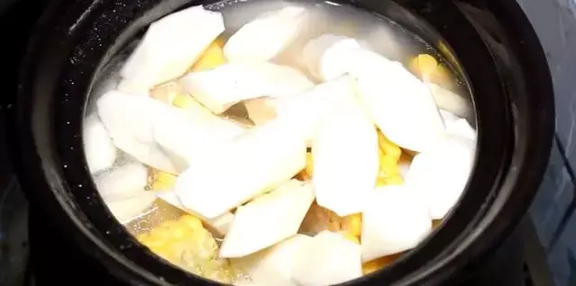7.烧开之后转小火,焖煮30分钟,然后再把玉米,山药倒进去继续炖15分钟;