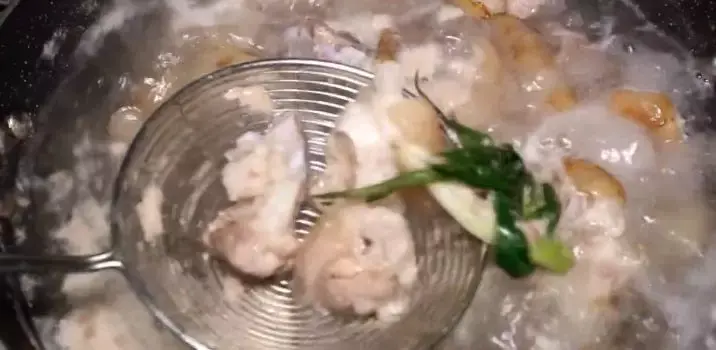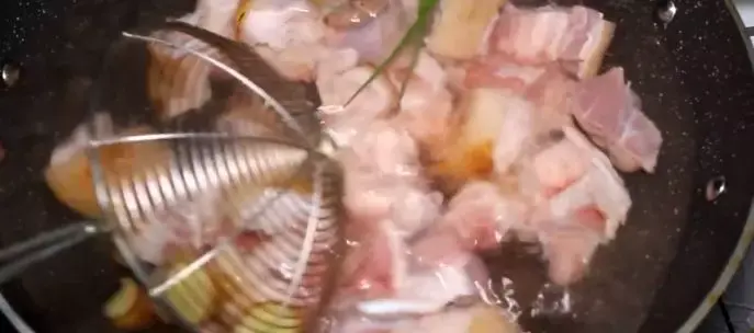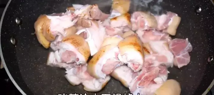 5.水烧开后,锅里的猪蹄继续焯水三分钟,然后捞出清洗干净;