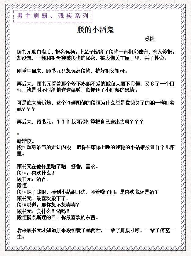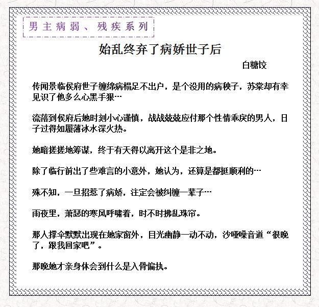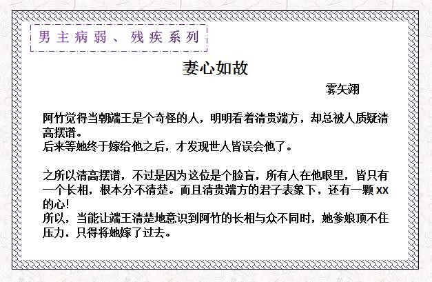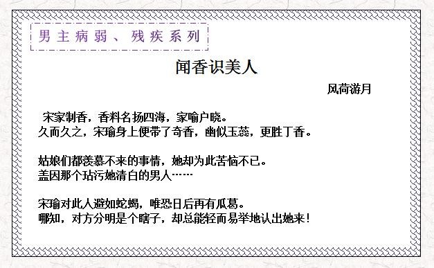 强推男主病弱残疾却才智过人的古言:《妻心如故》《闻香识美人》