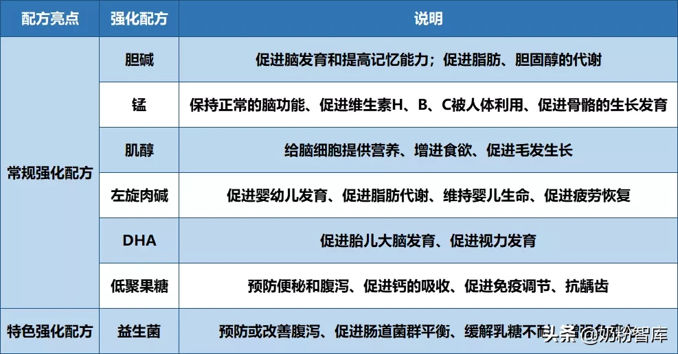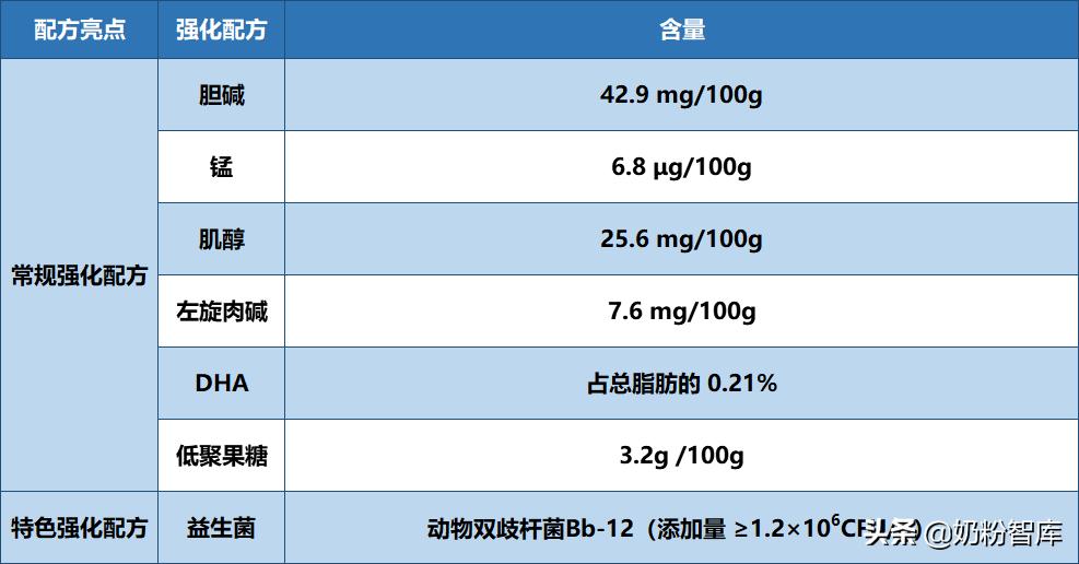 至于特色强化配方是指在国标中没有硬性规定,但是一部分品牌会特别添加的重要营养物质。