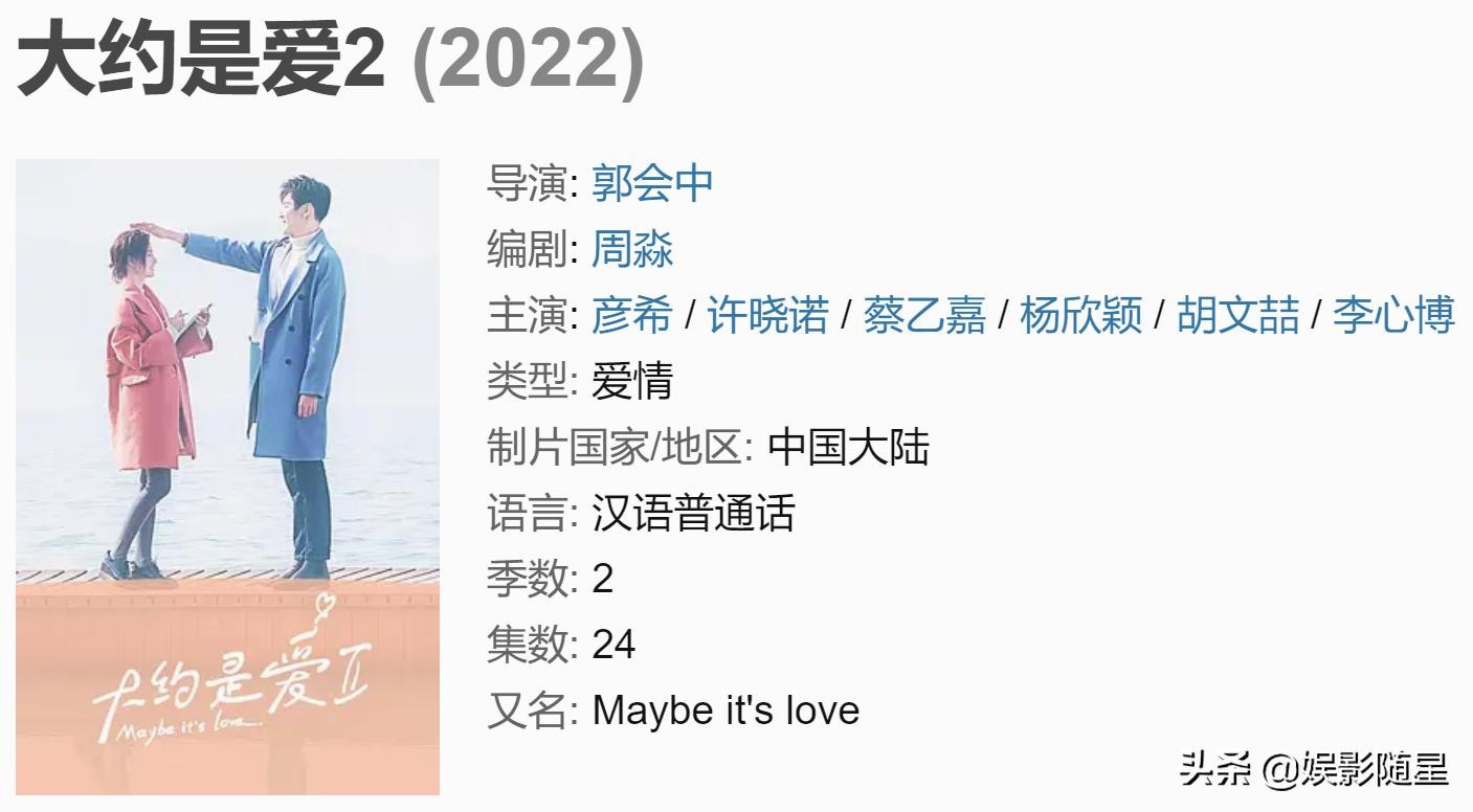 最后,关于《大约是爱2》这部青春偶像剧的话题,咱们今天就暂且先聊到这里。不知道大家对于彦希和许晓诺这对“高颜值CP”的表现是否期待呢?欢迎在下方留下您宝贵的看法和意见哦!