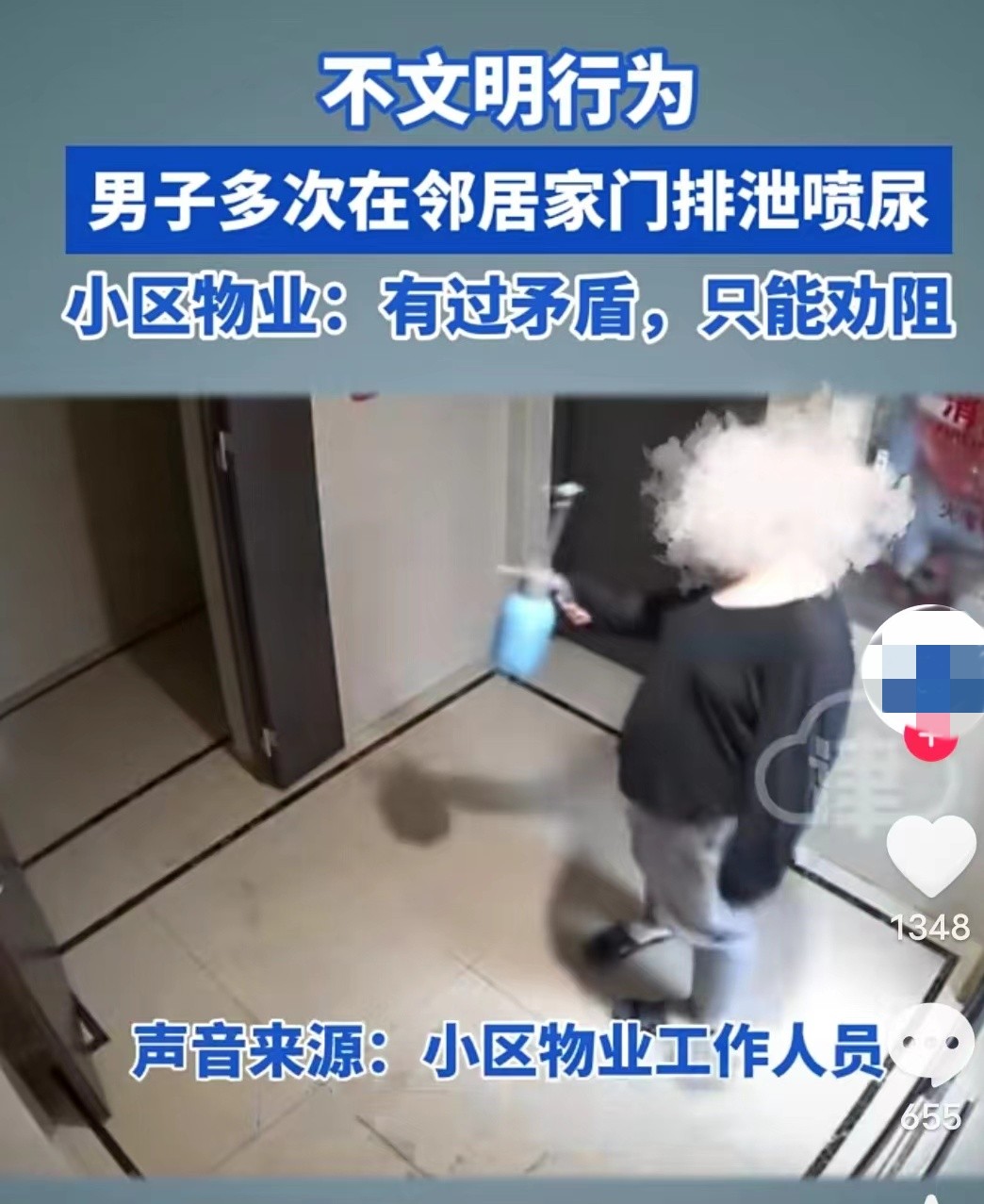 前不久,湖北武汉一个小区里发生了令人发指的事件。说是你绝对想象不到,一名男子竟然反复在邻居家门口拉屎拉尿,完全无视他人的感受。这让原本温馨祥和的小区笼罩在一股阴郁气氛之中,邻居们也被这个"奇葩"给搞得又惊又怒。