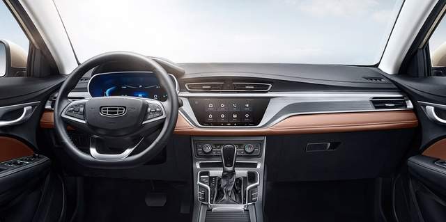 不出意外的话,内饰设计会沿用帝豪UP目前设计,新黑棕双色内饰配色尽显豪华,中控采用渐变式科技纹理,三辐式多功能方向盘中央镶嵌黑色吉利车标,门板以及中控面板点缀了银色拉丝纹理,扁平化设计的空调出风口,选用全新菱形打孔纹理的仿皮质座椅,都使质感得到了大大的提升。配置方面,帝豪甲醇版博世ABS9/ESP9.3和MGH80,可选装ETC车载摆设。