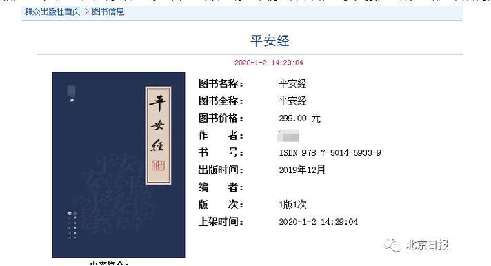 一部神书《平安经》引争议 人民出版社回应:从未出版