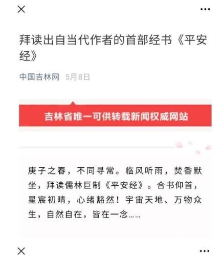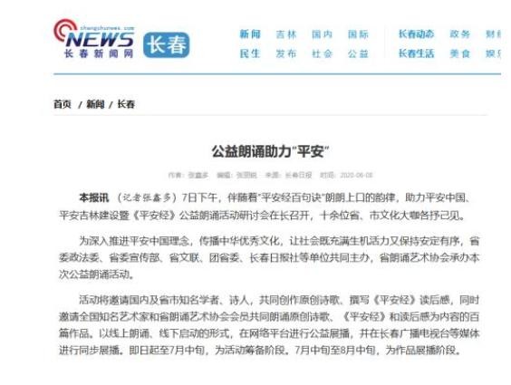 且有媒体也注意到,《吉林日报》也发表了关于“《平安经》公益朗诵活动研讨会”的新闻通稿,并且被吉林省人民政府新闻办公室转载。