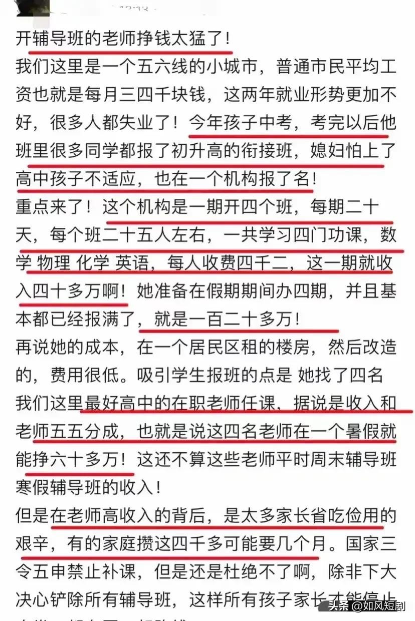 随着暑假的到来,原本是孩子们放松心情、充实自我的黄金时光,然而近年来,补习班却如雨后春笋般涌现,成为了不少孩子和家长避之不及的“梦魇”。家长们的怒斥声不绝于耳:“暑假就是一些教师疯狂捞钱的时候。”这一现象引发了社会的广泛关注,让我们一同揭开补习班背后的真相。
