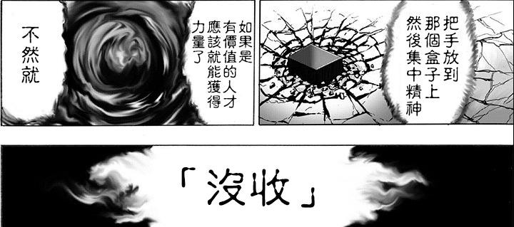 而183话则给出了答案,因为当埼玉和弗莱士准备碰触这个盒子的时候,这个盒子却开口说话了,并让埼玉3个人去触摸这个黑色立方体,并表示如果是有价值的人就回得到力量,如果没有价值的人力量就会被回收