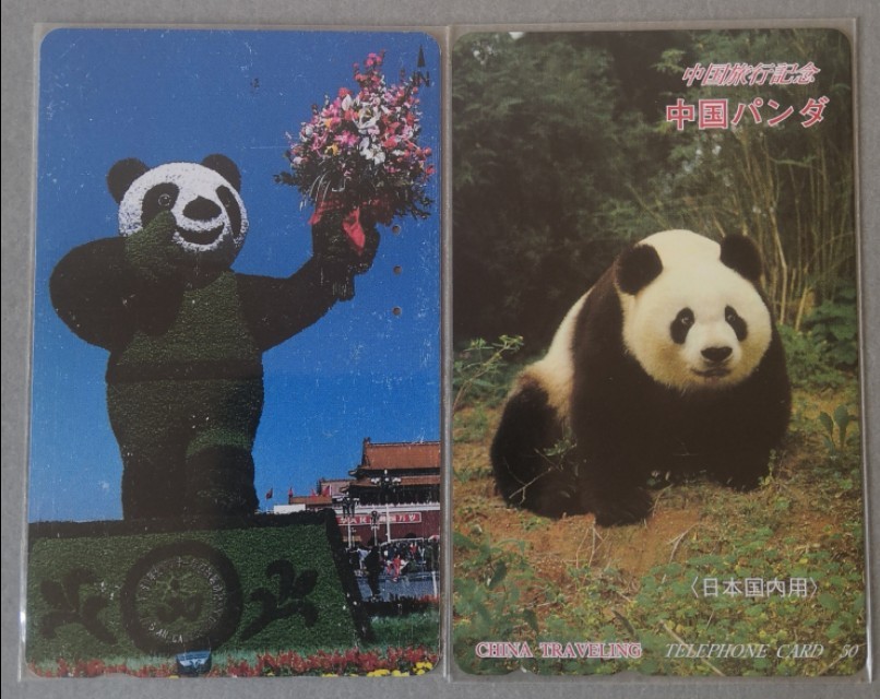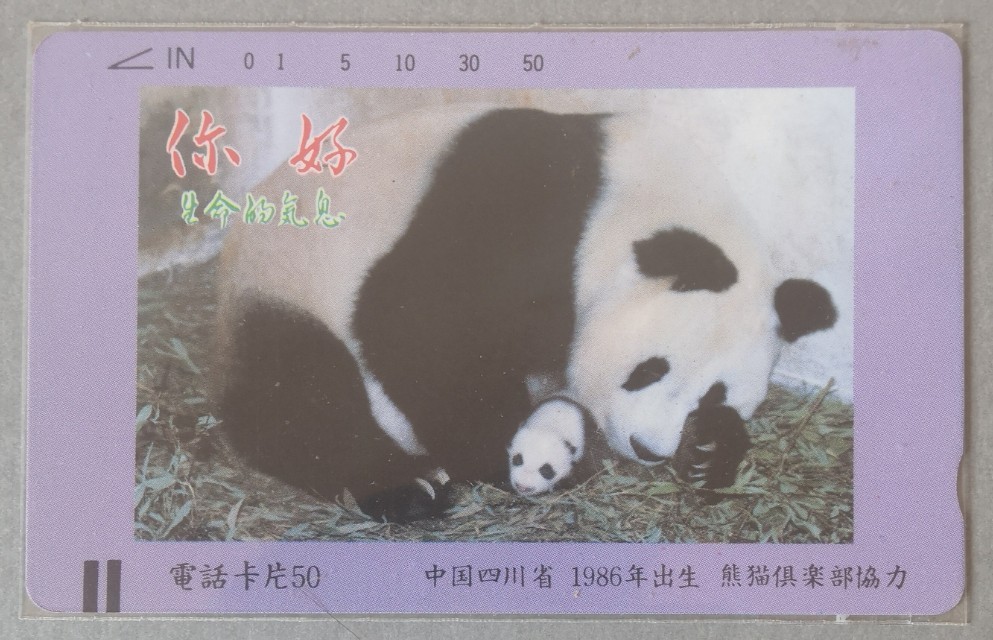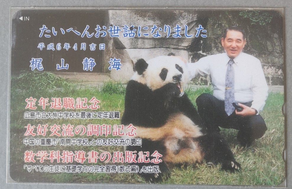 一个友好的日人,在重庆动物园和大熊猫合影,回去做的礼品人卡,应该是1994年重庆熊猫!