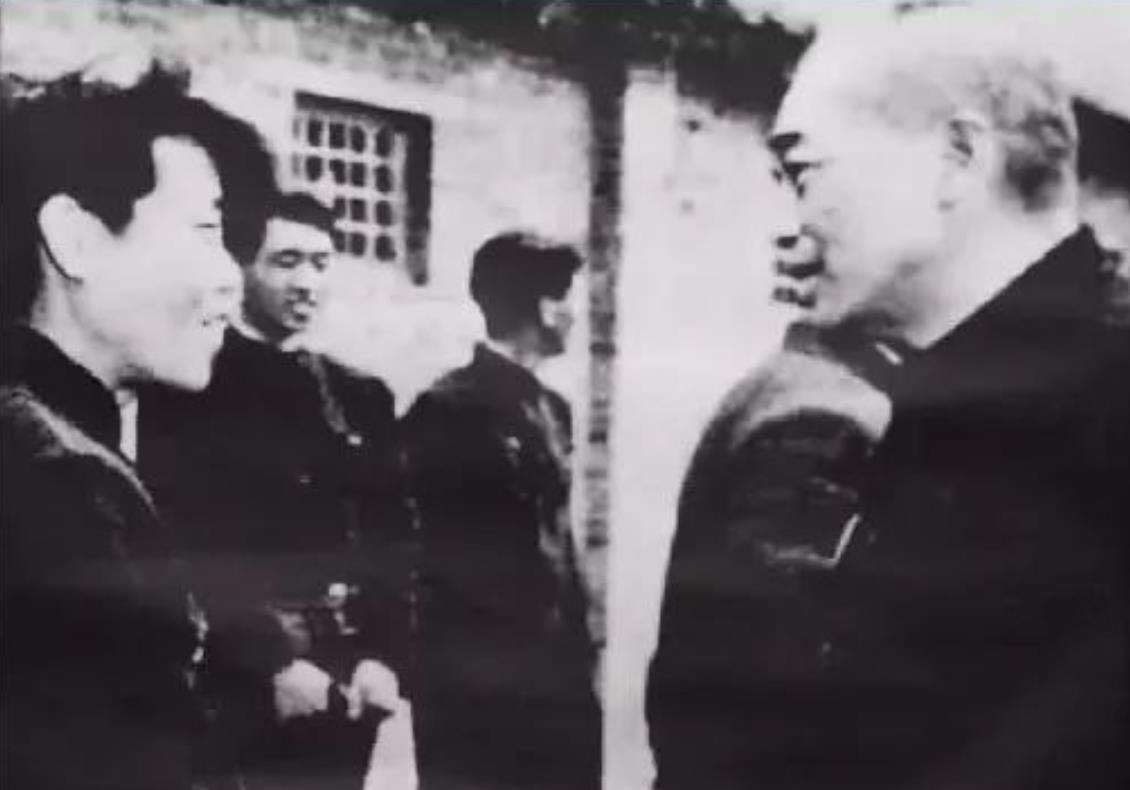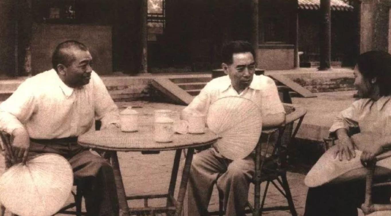 彭德怀和周恩来在中南海永福堂,与彭德怀的弟妹龙国英亲切交谈。