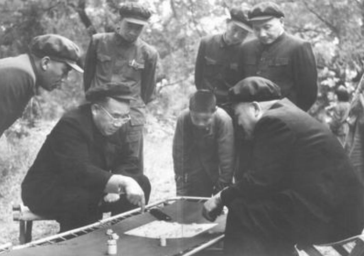 彭德怀回国后,和朱德总司令等几位四川老乡,去往十三陵郊游。就在十三陵,彭德怀棋瘾来了,就要和朱德总司令下一盘。景希珍赶忙把行军床支起来,就成为了棋桌,两位老总就开始下棋。随行的摄影师,按下快门,留下了两位老总下棋的经典照片。