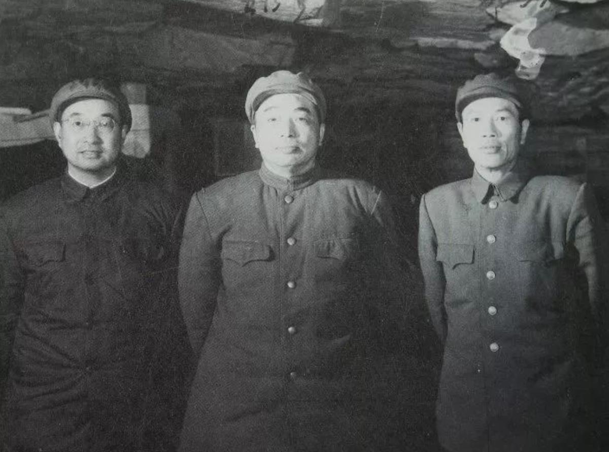 在抗美援朝前线,彭德怀与陈赓(左一)、邓华(右一)合照。