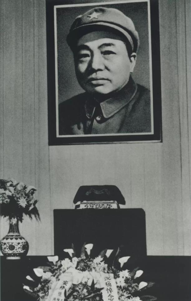 1978年12月24日,彭德怀和陶铸同志的追悼大会在人民大会堂隆重举行。图为追悼会上彭德怀的遗像和骨灰盒。