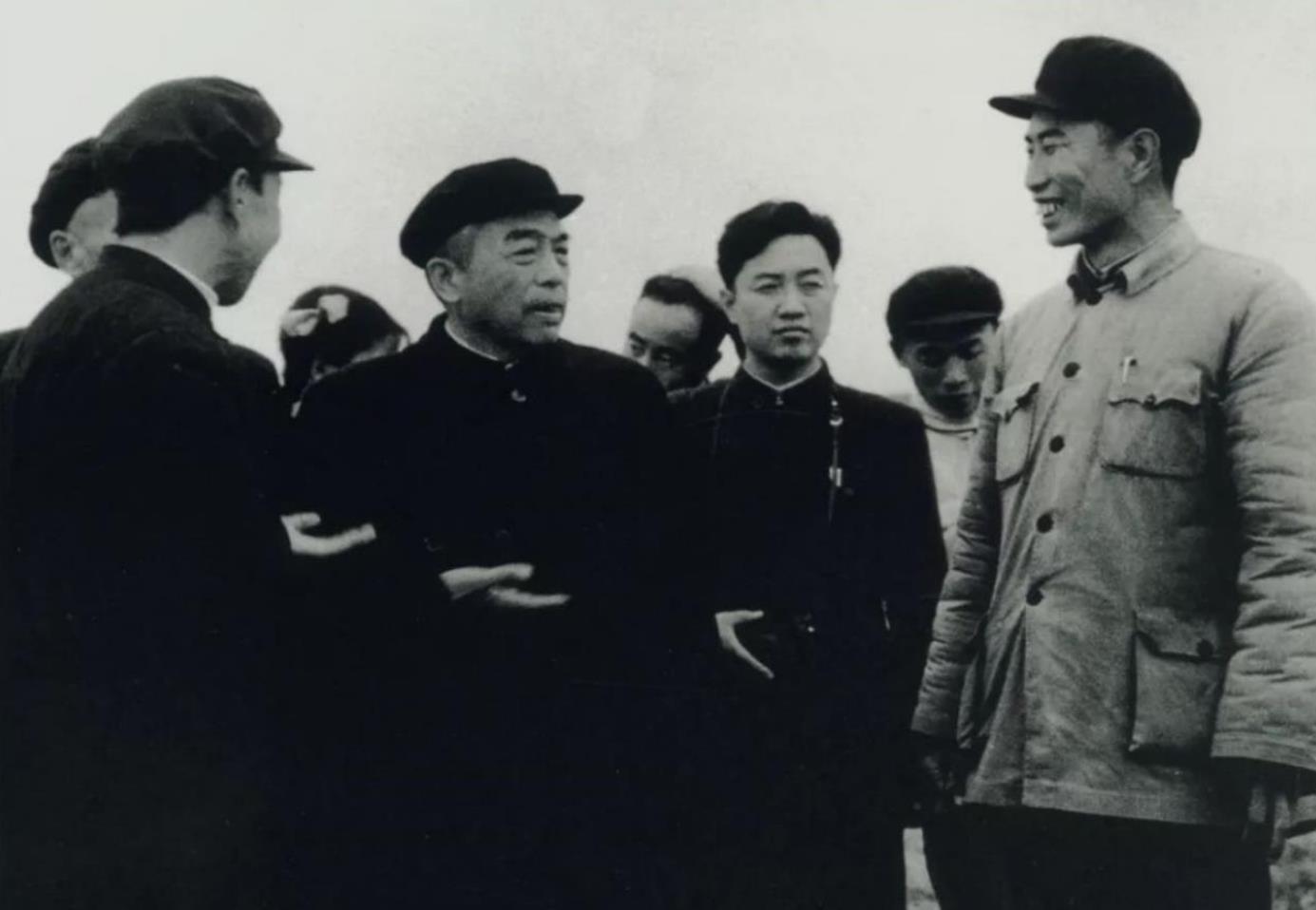 1958年8月,景希珍(左三)跟随彭德怀在山海关农村考察。