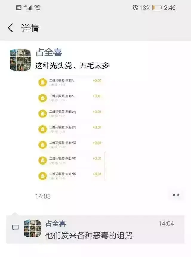一些网民给占全喜账号打去1毛钱,还有网民贴出占全喜为天价医疗费用和美国医疗制度辩解的文字,质疑占家为什么不去美国搞“医疗平权运动”。