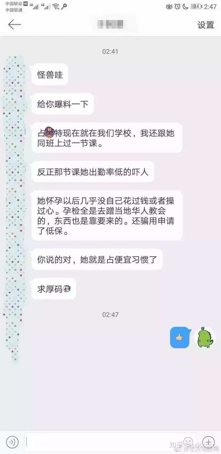 以及,她还在校报上哭诉自己是如何被中国迫害的,一些不了解情况的同学一开始还会报以同情,但和她接触几次之后都认为她“脑子不太合适”,比如跟踪男同学,半夜在人家宿舍门口游荡。