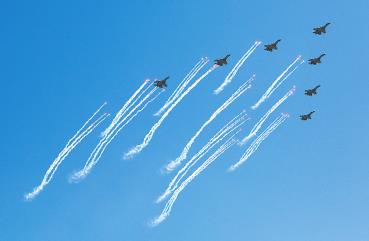 以空军航空兵为主体,陆军及海军航空兵联合组成的10个空中梯队接受检阅。(资料图片)