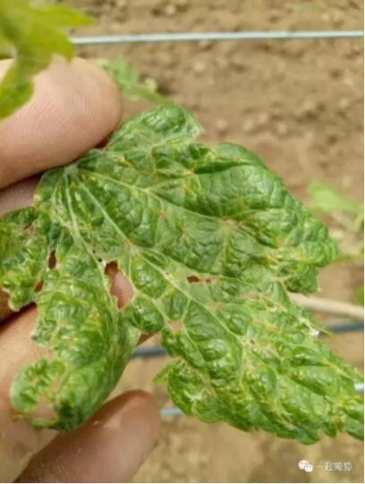 下图是毒死蜱药害,绒球期以前喷施问题不大,绒球期再喷施,就是这样。其实国家规定,今年毒死蜱在蔬菜上已经禁止使用了。水果上面也快禁用了,不用最好。症状和霜霉类似,一定分清。