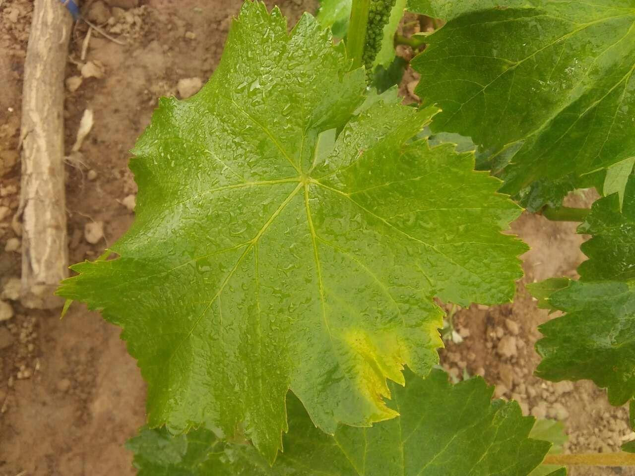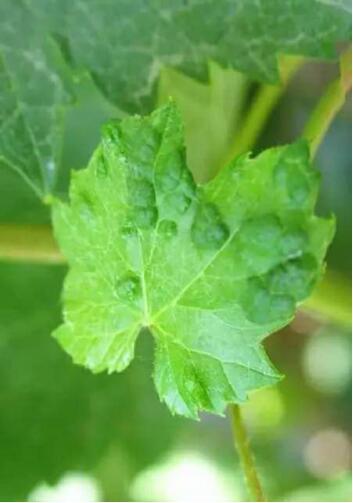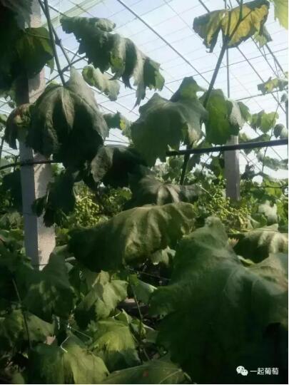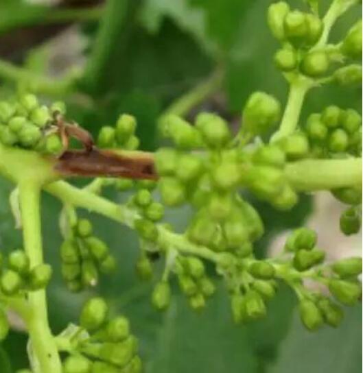 合理枝蔓管理,促使叶片提前老化。留枝不宜过多,过密,及时绑缚。多花前集中摘心之后,果穗周围的叉会长得很快,这是靠近果穗或者果穗以下的叉必须全部抹干净,防治叉上的嫩叶感染霜霉直接上果。