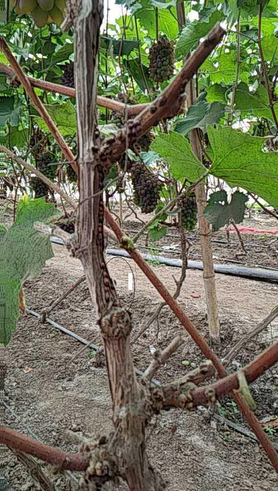 下图则是前期的根瘤癌,再早些时候会有蔓割病,早期喷辛菌胺或者病易克可以解决,晚期剪掉算了。