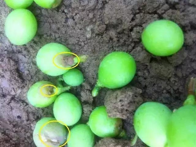 日灼在上部,汽灼在下部,日灼一个点,汽灼半个粒。分清楚也没用,能防住就好。