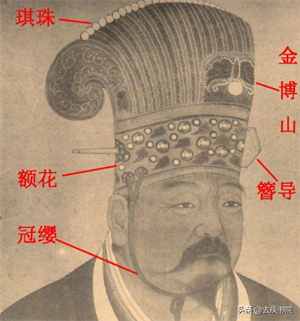 通天冠上还有一个金色的牌子——这个牌子被称为"博山"。