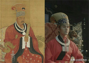 这么说吧,剧组很明显参考了宋代的皇帝通天冠服画像。赵匡胤当上皇帝之后,就给自己去世的父亲赵弘殷封了个"帝位",史称宋宣祖。