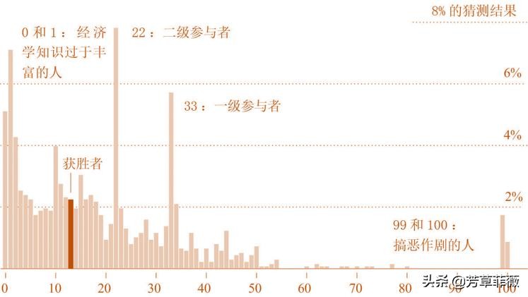 从0到100之间选一个数字,使这个数字尽可能接近其他参赛者所选数字平均值的2/3。为了便于理解,可以先假设有三名参赛者,分别猜的是20、30和40,平均数为30,30的2/3是20,所以猜数字20的那个人就是赢家。