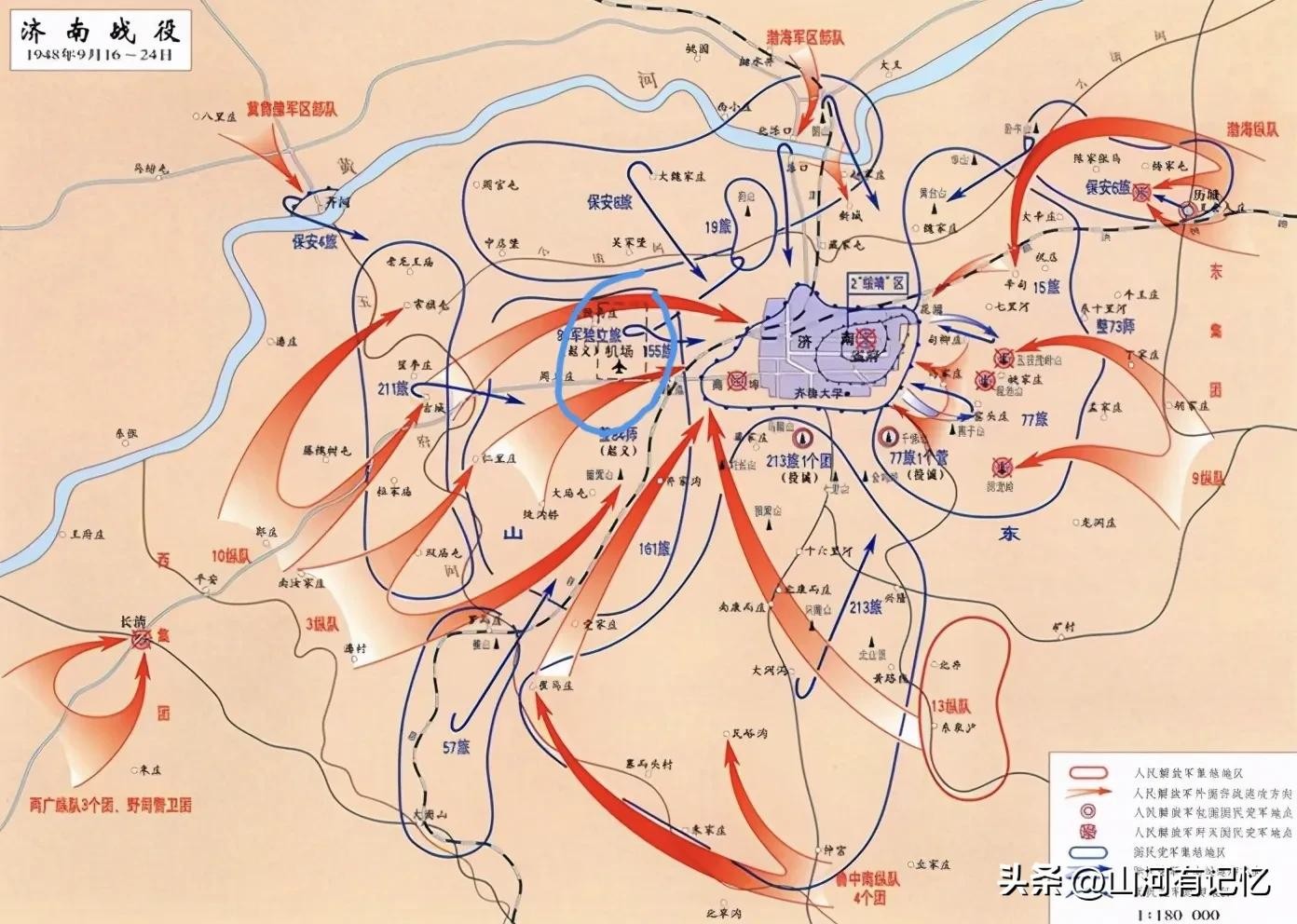 这一点早在7月份准备攻打济南时,主席就有指示,9月2日,又以专电指示粟陈唐:“刘峙可能再以一部兵力空运至济南,你们须密切注视此种可能情况,并预先考虑当发现此种情况时,是否提前发动攻占机场。”