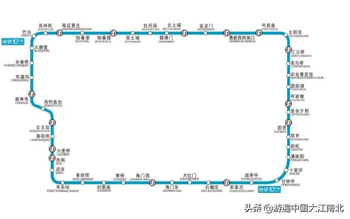 北京地铁2号线(Beijing Subway Line 2)是中国第一条环形地铁线路,于1984年9月20日开通运营,其标志色为蓝色
