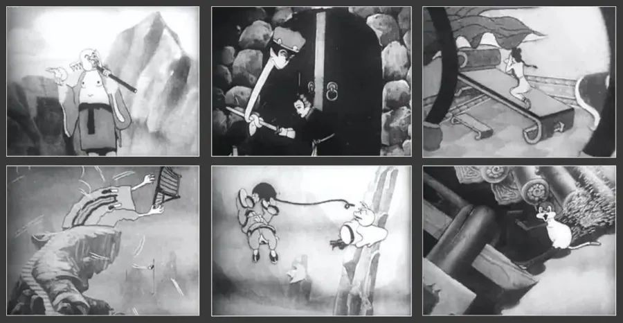 商业上的初步成功为万氏兄弟积累了一手经验,但少年人志不在此,一笔一笔描绘中国动画的开篇,才是。1926年,依然挤在7平方米的亭子间,彼时26岁的万籁鸣与胞弟们在反复尝试中摸到了门道,中国第一部独创动画片《大闹画室》诞生。时长十分钟,这则画家与纸片人追逐嬉闹的故事,开启了中国动画电影划时代的大幕。10年后,万氏兄弟交出《骆驼献舞》,中国动画进入有声时代;又过了5年即1941年,他们与新华联合影业合作,历经18个月、共有百余人绘制近2万张画稿的《铁扇公主》完成,这是中国也是亚洲第一部大型动画长片;1958年,中国第一部剪纸动画片《猪八戒吃瓜》出自万氏兄弟手;1964年,万籁鸣与唐澄合作,中国第一部彩色动画长片《大闹天宫》问世……载入史册的经典背后,凝结着万氏兄弟一生的创新精神、艺术追求和家国情怀。