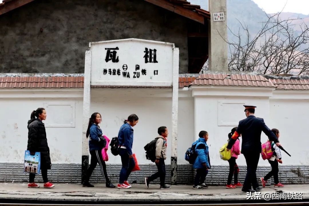 (月华站翘首期盼火车到来的学生,拍摄@石本驹)▼