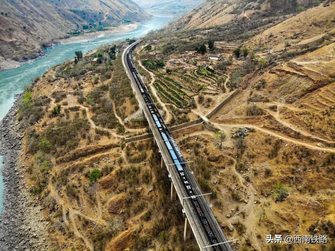 (列车满载货物通过成昆铁路铁马大桥,拍摄@古波)▼