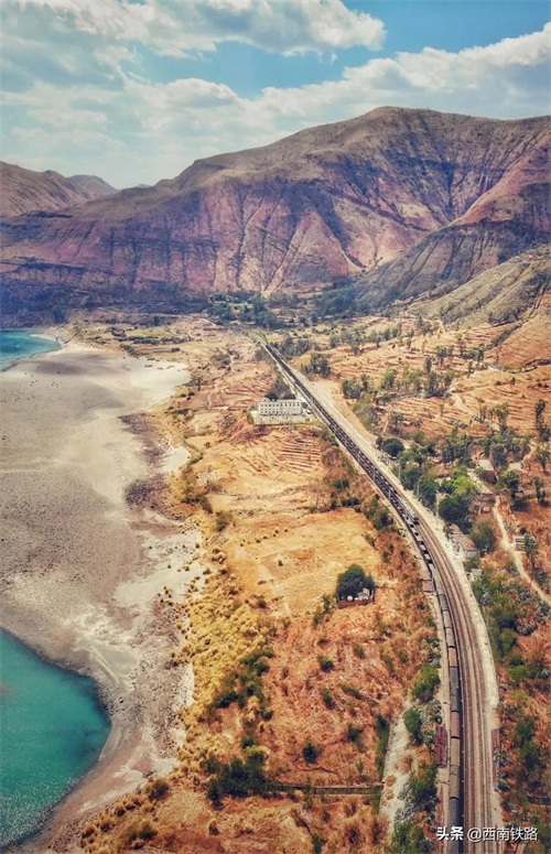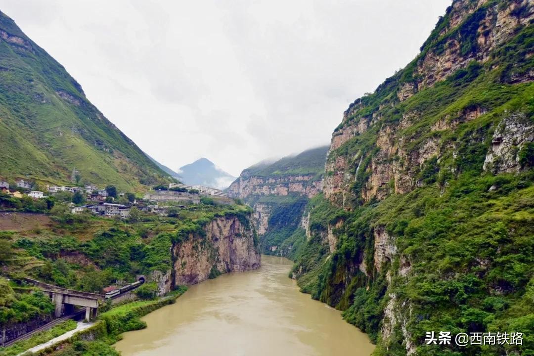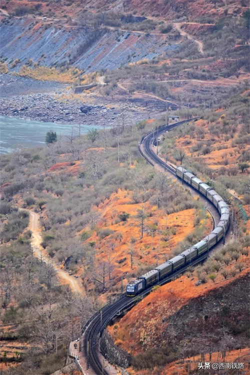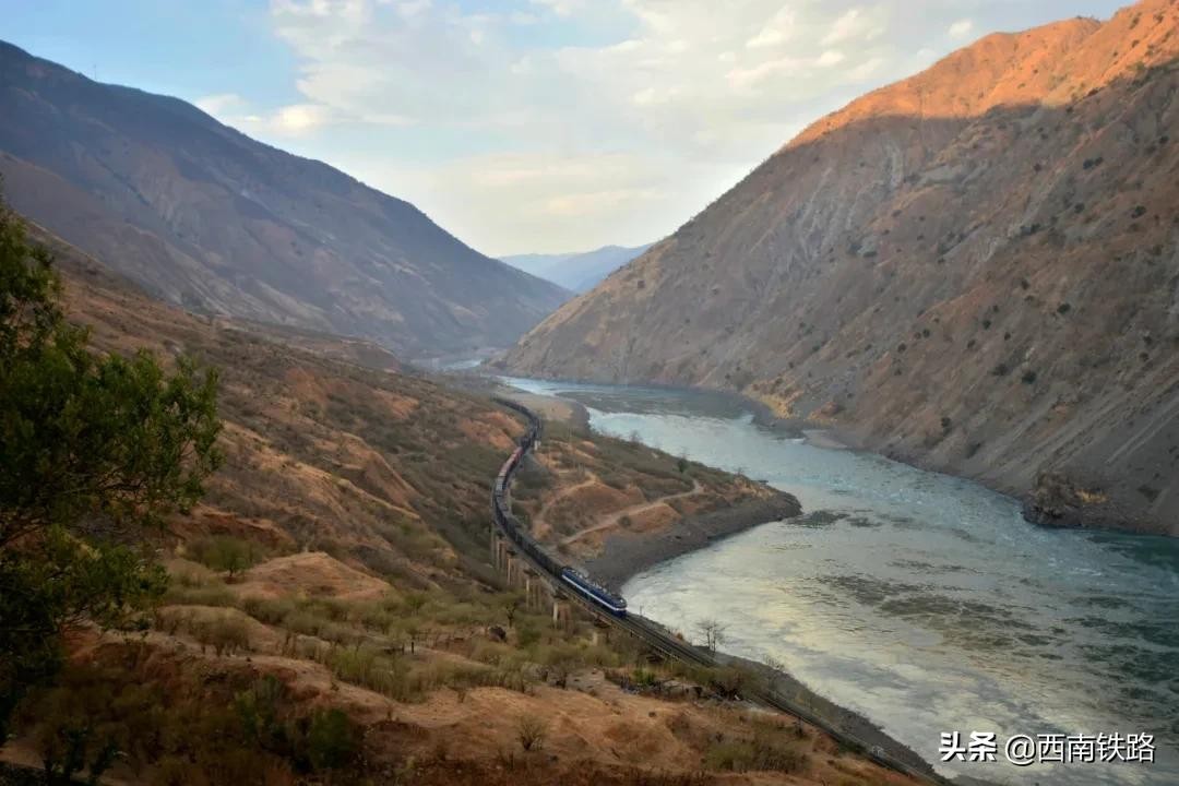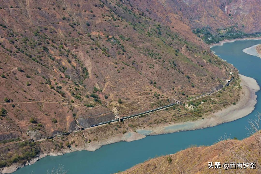 (列车行驶在成昆铁路金沙江畔,拍摄@饶局饶段)▼