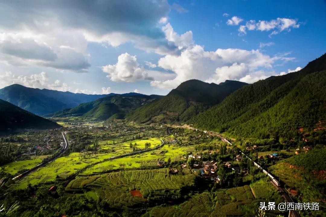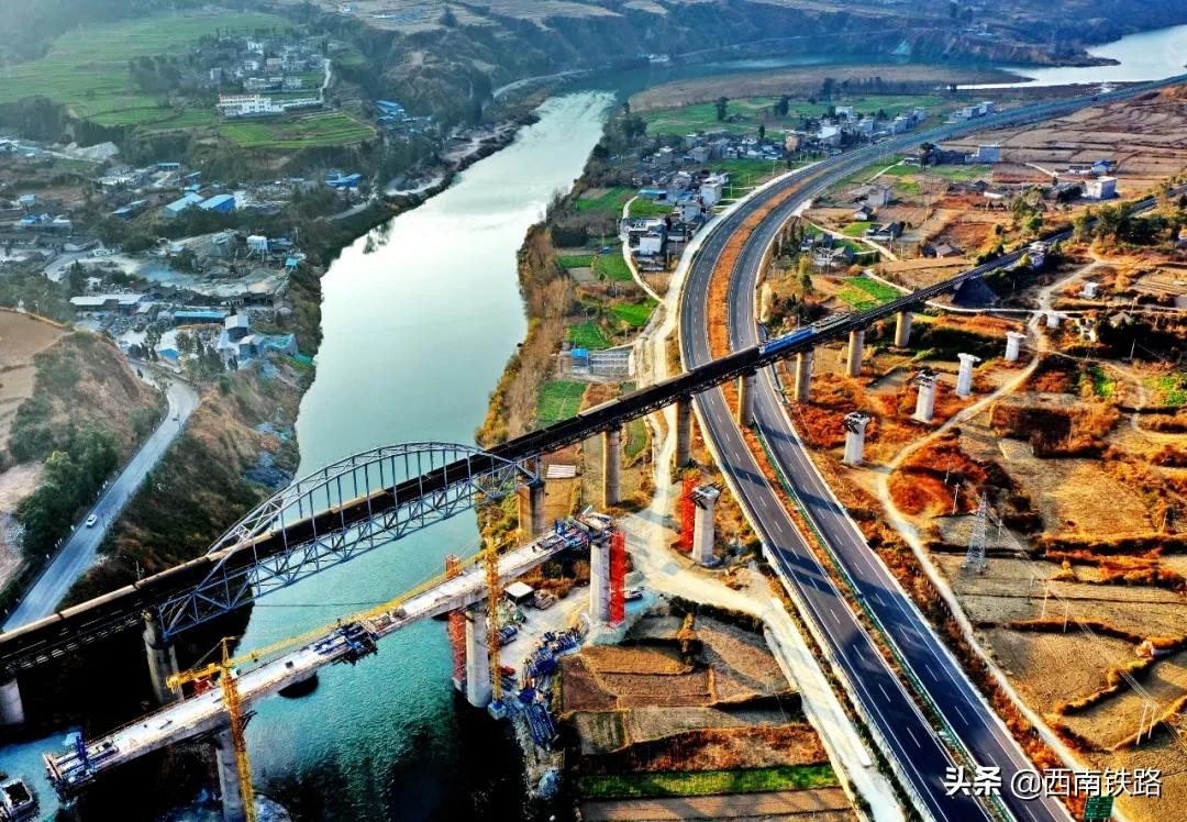 (列车行驶在成昆铁路,远处的成昆铁路复线正在抓紧建设中,拍摄@罗成)▼