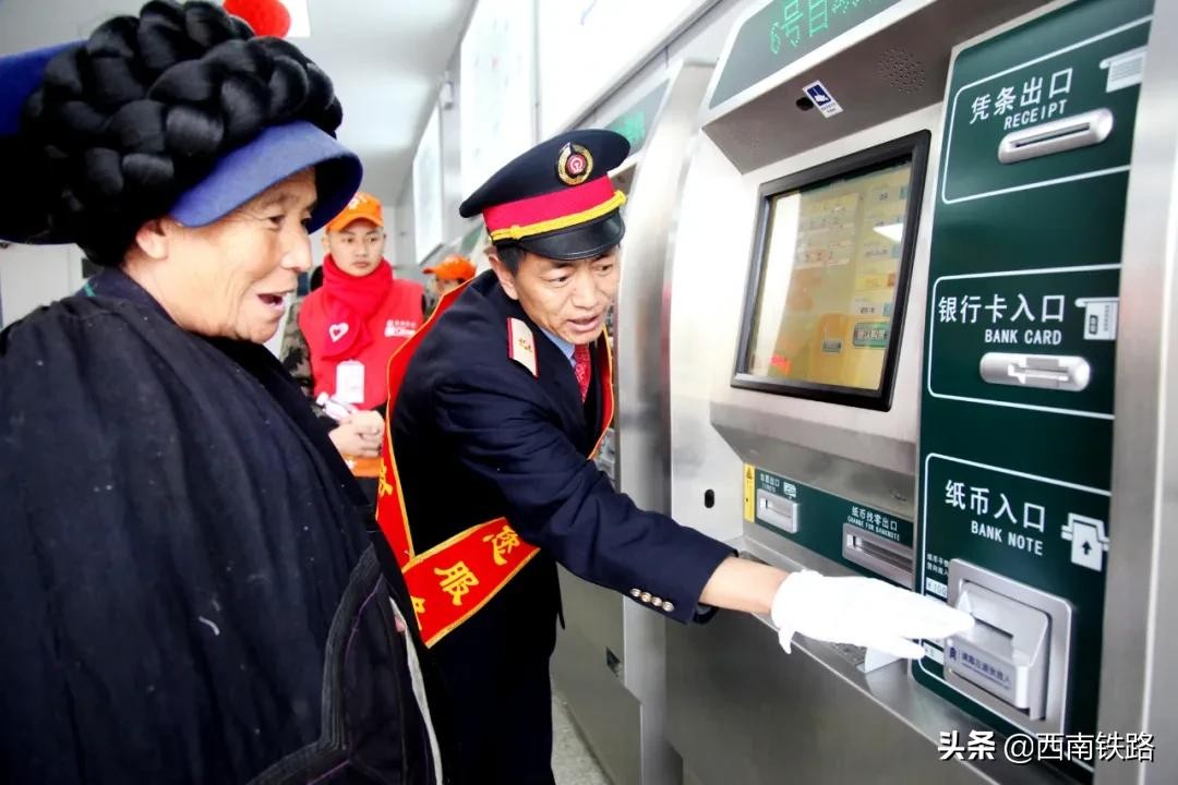 (2017年2月20日,西昌火车站彝族职工为彝族旅客讲解自动售取票机的使用方法,来源@西昌车务段)▼