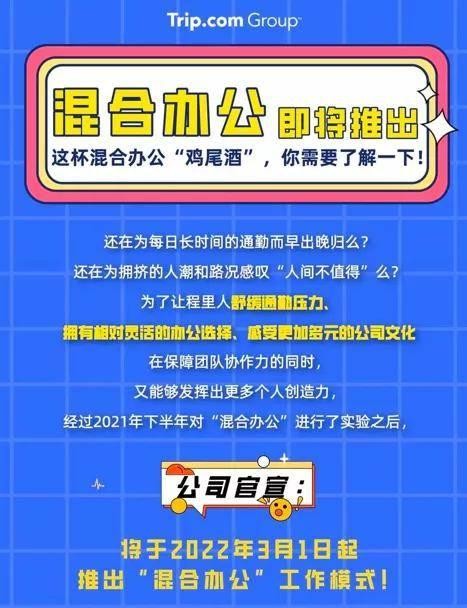 已经有企业走在时代前沿:总员工数超三万人的携程集团,宣布不分男女、不分职岗、不做薪资调整地开展“3+2”工作制,允许员工在每周三、周五在家远程办公。创始人梁建章表示这既是疫情防控所需,更为缓解员工照顾家庭、带孩子的压力,最好能促进社会生育率的提升。