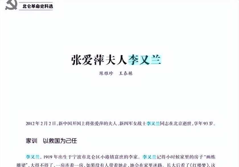 标题:丈夫项英牺牲后,李又兰改嫁张爱萍,生下三个儿子都是牛人