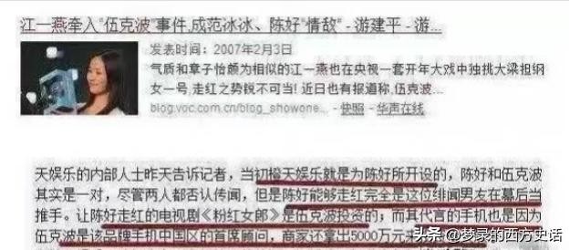 伍克波和“万人迷”陈好分手,将她赶出橙天娱乐,和江一燕走到了一起。