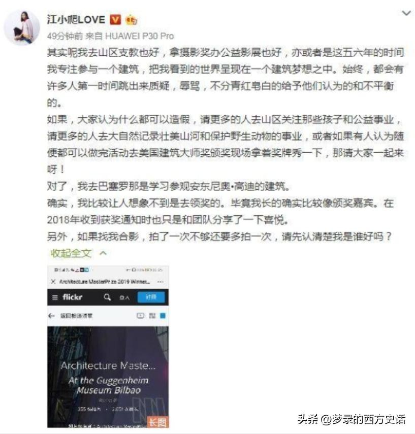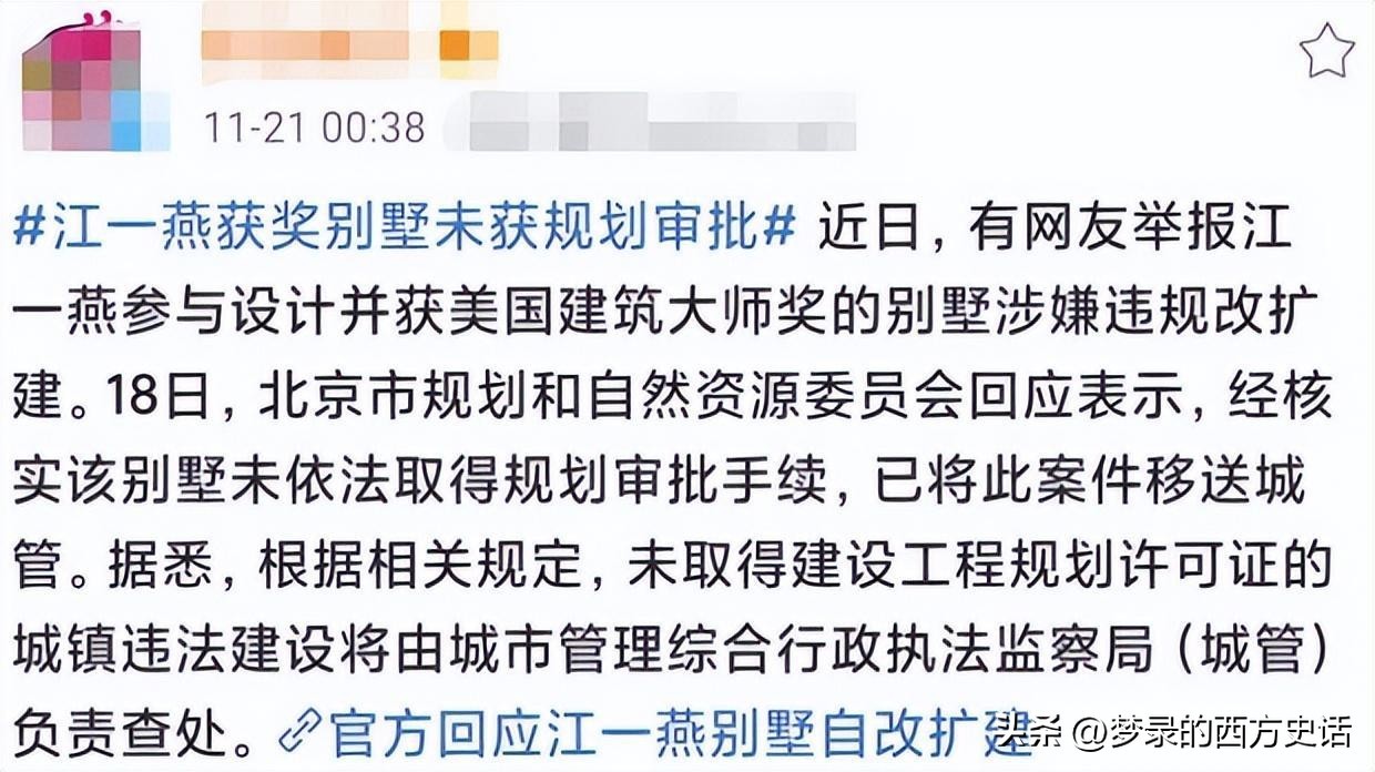 网友还发现江一燕获得的“建筑师大奖”和设计无关,如此操作让网友更加气愤。