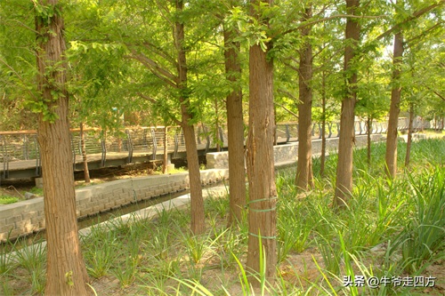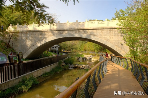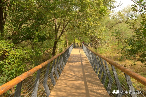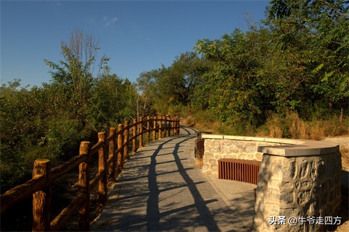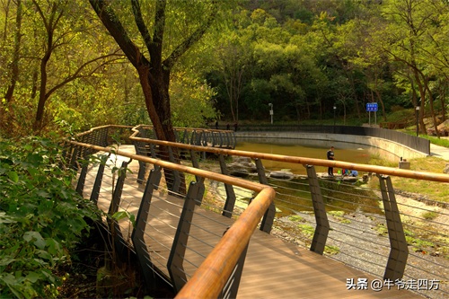 顺着公园的南门往生态停车场方向回走,大约7-8分钟的路程就是芳菲谷,由于季节原因虽然看不到芳菲,但行走在芳菲栈道穿越芳菲谷,也极为惬意。