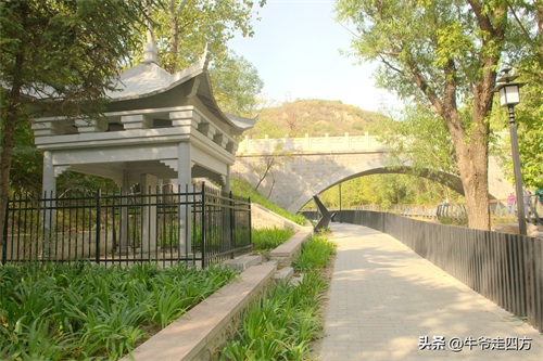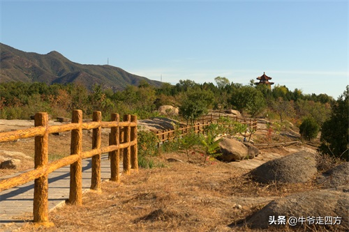 “山隔因堤”处是白水寺景区和西虎岭北园区交界的闪亮位置,向西南远眺,静谧的白水寺与燕山石化的工业建筑形成了一幅颇具视觉冲击的壮丽画卷,展现出燕山地区这个历史明镇特有的蓬勃朝气。