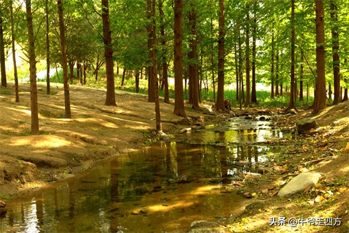 白水寺森林公园因白水山溪流淌,有着潺潺的流水常年流畅,顺着水流,沿着栈道汀步公园深处走,谷底绿草茵茵,置身其中,仿佛走进原始森林,也算得上是柳暗花明又一景。